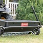 The universal hitch on this 100lb tow behind spike/seeder/drop spreader will let you hook up to all makes and models of lawn tractors. This spike/seeder/drop spreader offers more precise performance thanks to its drop spreading & aerating capabilities. The large flat free tires provide a smooth transport on the project area. The 100 lb. Tow spike/seeder/drop spreader offers a 32 inch controlled spreading width. Depending on material & speed of application, the 100 lb. Tow spiker/seeder/drop spreader can coverage up to 1/3 acre or 17,500 sq. ft. With a steel rod flow control it will allow for precise setting adjustment from your tractor seat and give you a smooth and easy distribution of fertilizer, grass seed, salt or other materials.